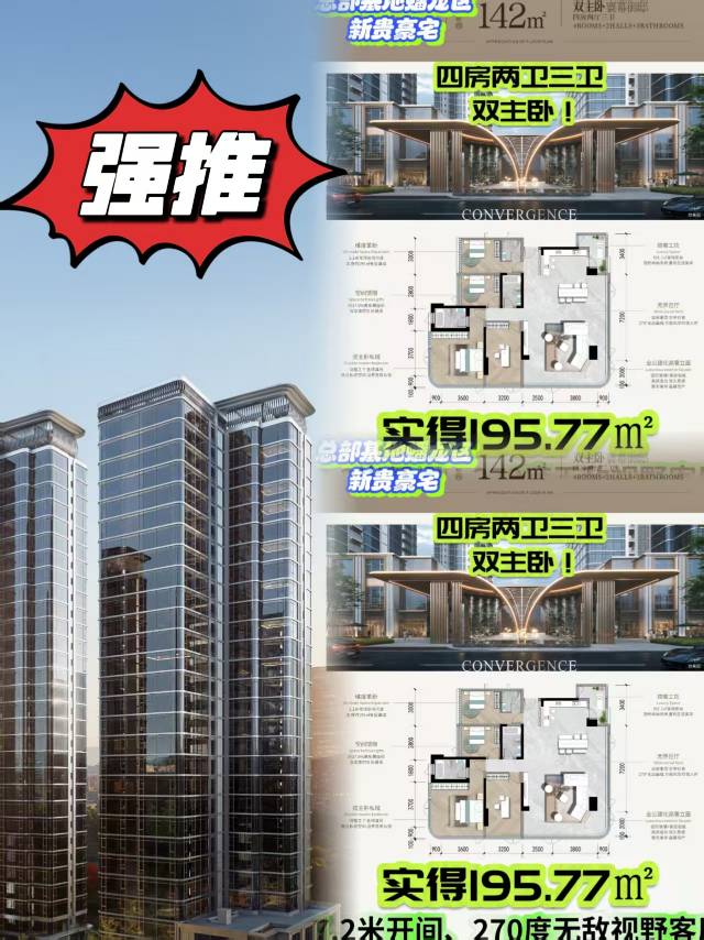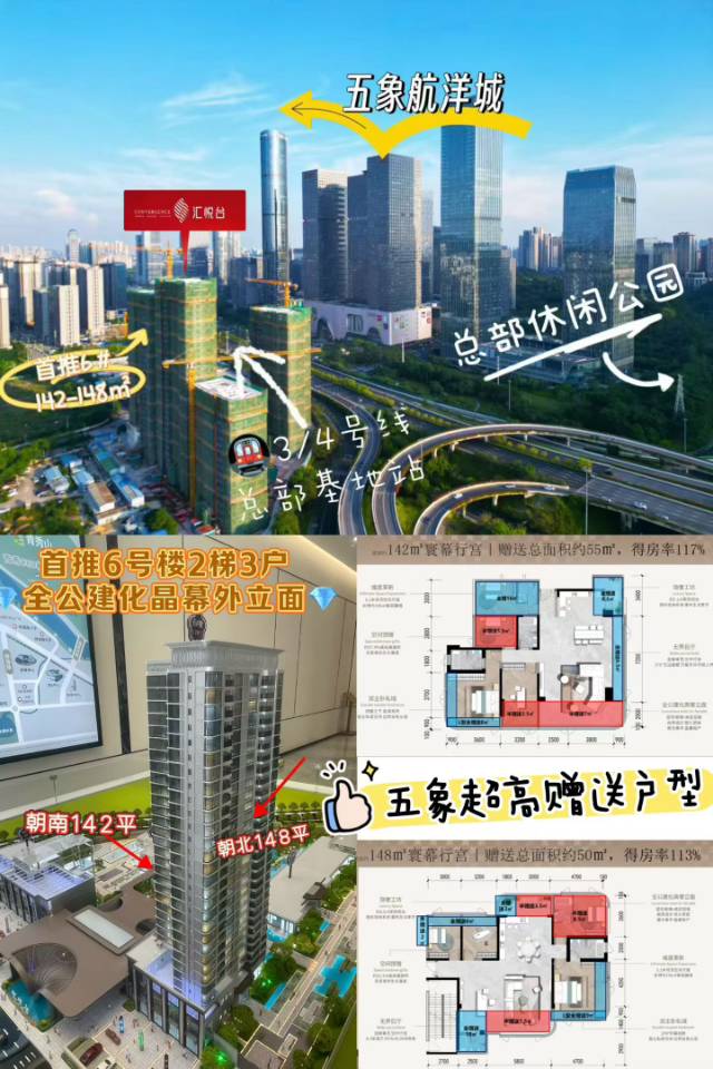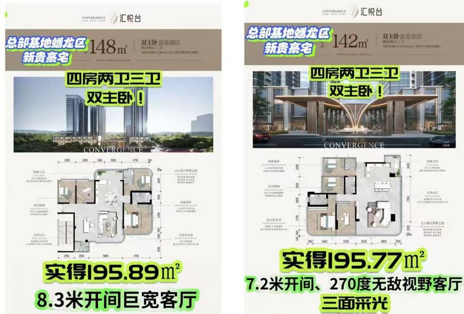🔥总部基地核芯【汇悦台】 ⏰15号样板间开放‼️预约享5️⃣万优惠 👉🏻142㎡实🉐面积195㎡,270度景观巨厅,7.2米开间 👉🏻148㎡实🉐195.9㎡,客厅8.3米开间,主卧270度视野